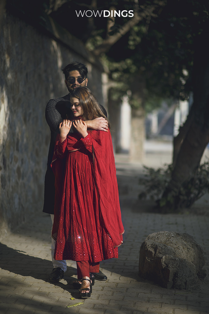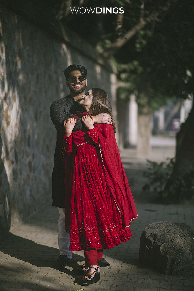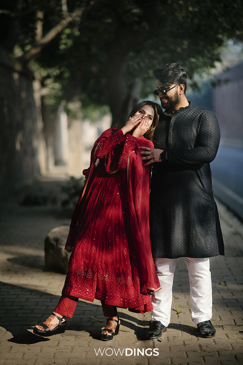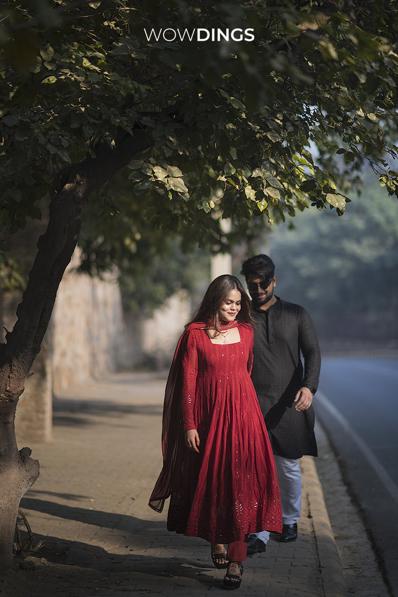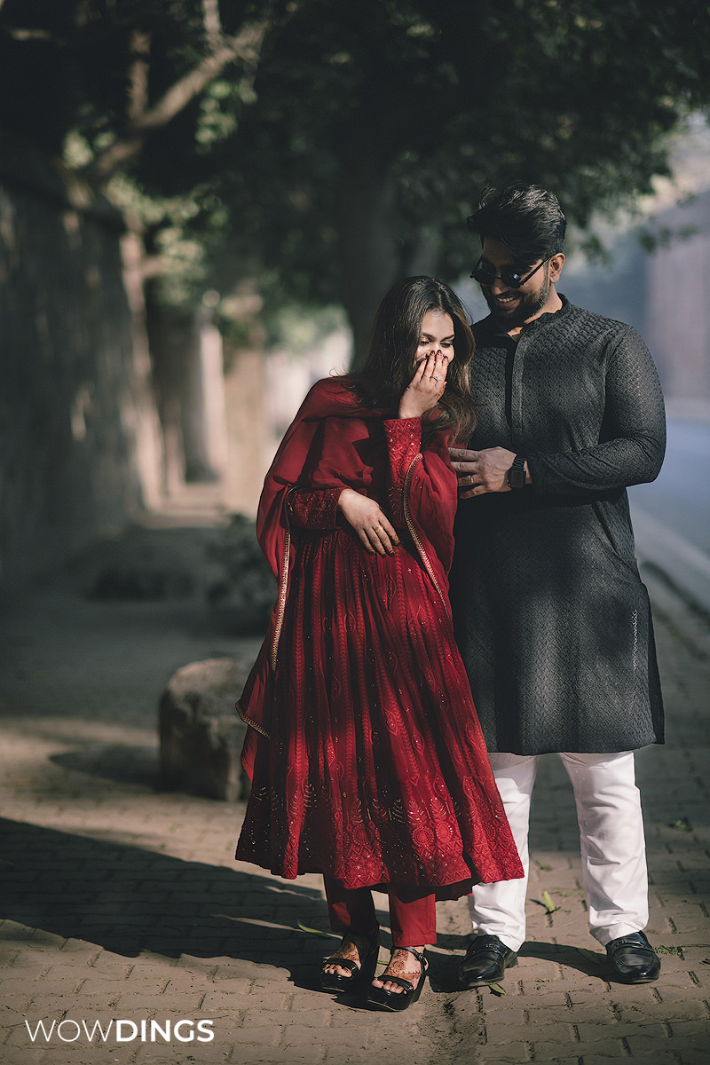 Against the backdrop of historic monuments and the lively chaos of the city, their love story unfolded like a beautiful chapter in a timeless novel. Each photograph became a narrative of two souls who discovered their forever amidst the whirlwind of life’s chaos. The winter season added its own touch of magic to the frames, with Ayesha draped in a dark rose-red salwar suit and Amaan donning a classic black kurta. Even in the cold, their love exuded warmth, creating an enchanting contrast that ‘Wowdings’ artfully captured.